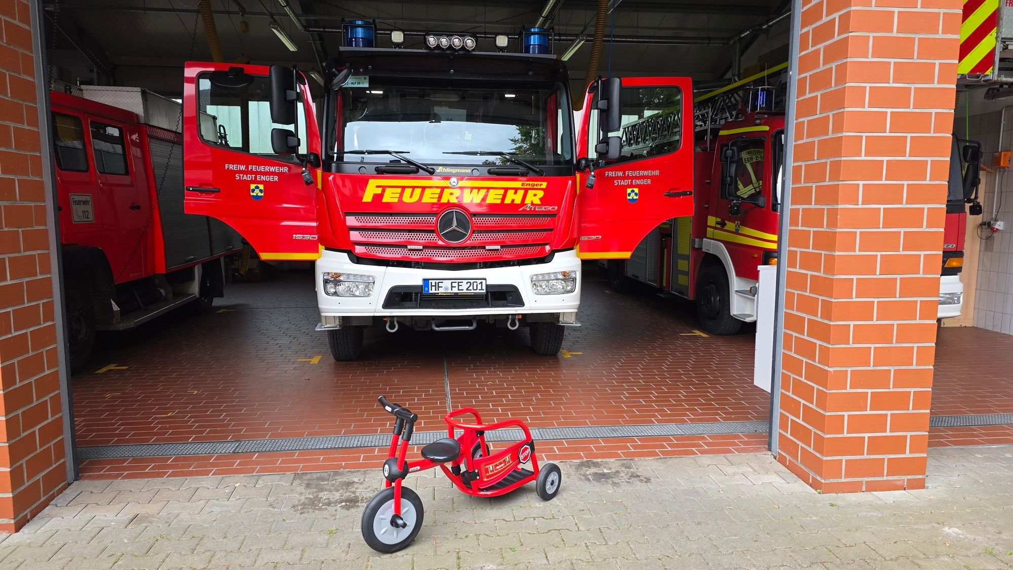 Als Geschenk für die Kinder und Kita gab es ein Dreirad-Taxi in Feuerrot, Modell Feuerwehr. Viel Spaß damit liebe AWO Kita in Dreyen. Finanziert wurde das Geschenk übrigens auch mit Spenden der Dreyener Bevölkerung während der Tannenbaumaktion.