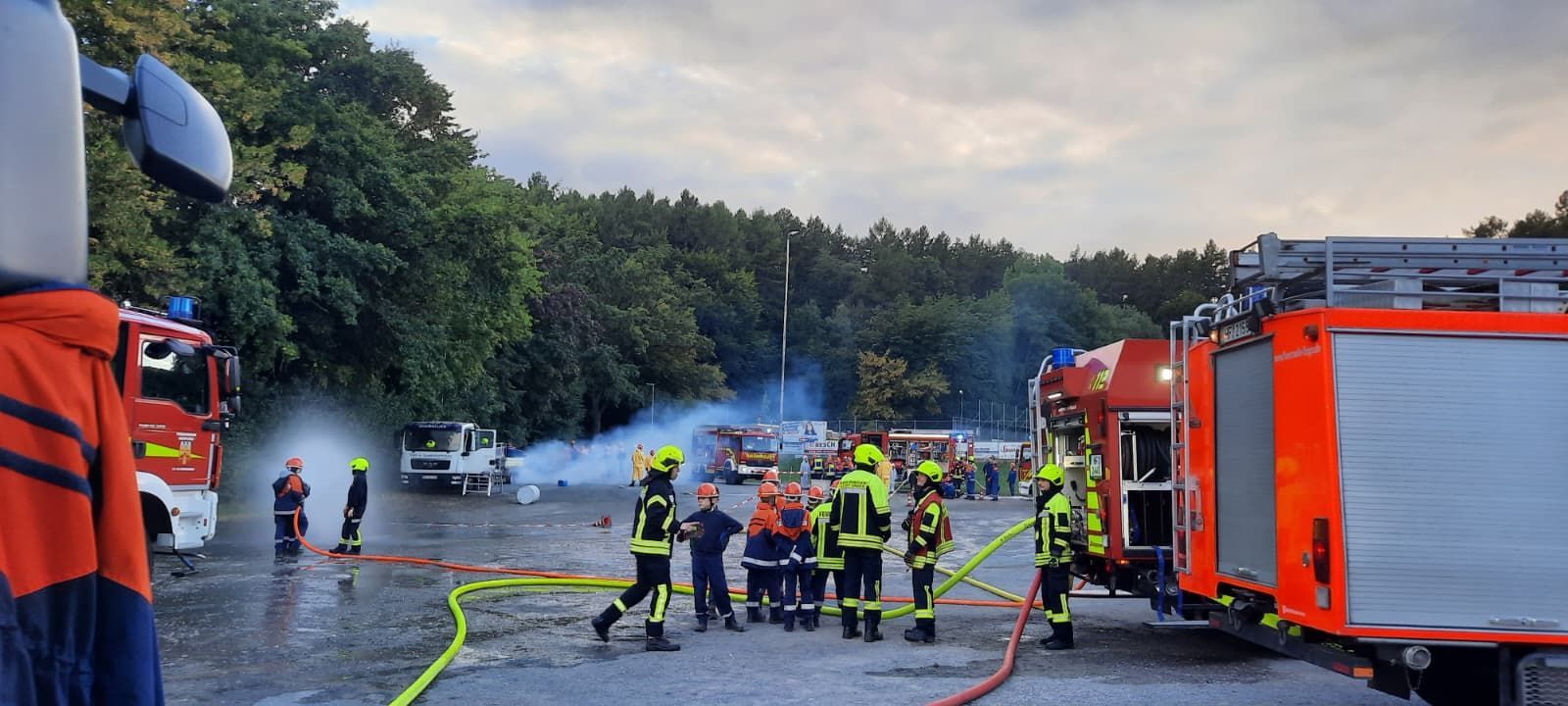 Nach der Einweisung am Gerätehaus, kam direkt der „Alarm" -> ab zum Sportplatz, wo uns echte Herausforderungen erwarteten: