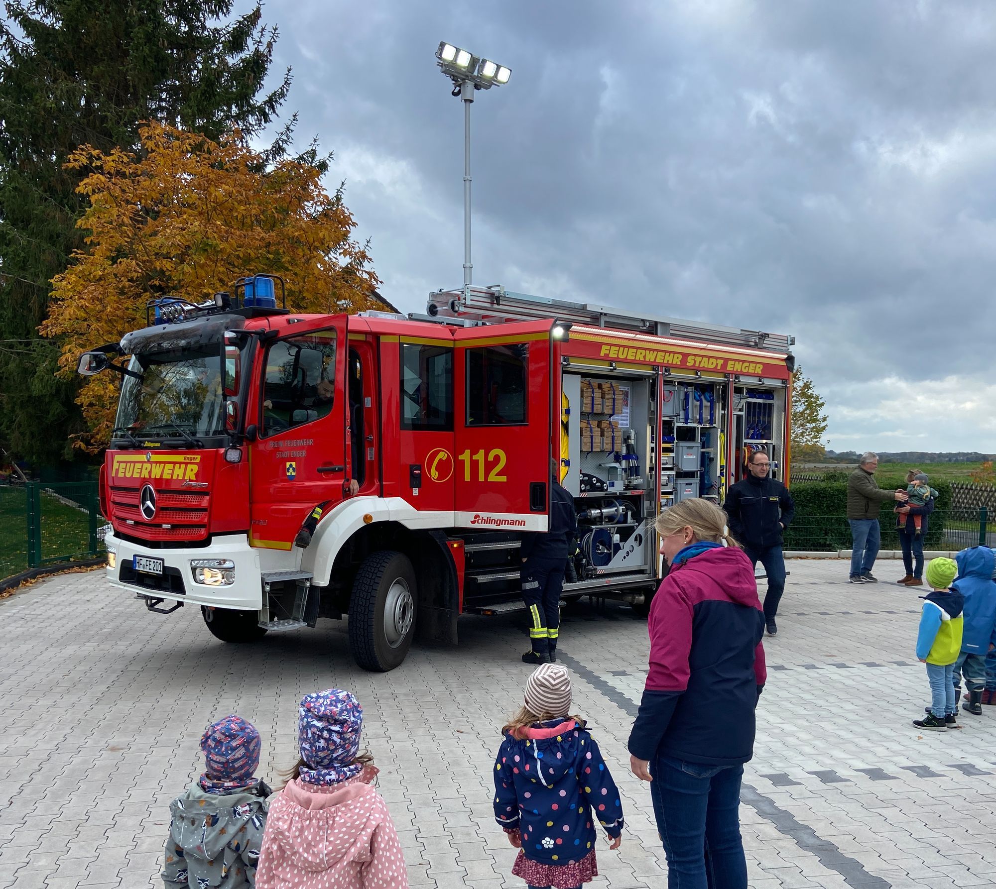 Wir besuchten die Kita mit dem HLF und überreichten eine Spende zum Geburtstag. Die Kinder hatten so Gelegenheit das Fahrzeug zu erkunden und sie hatten jede Menge Fragen dabei.