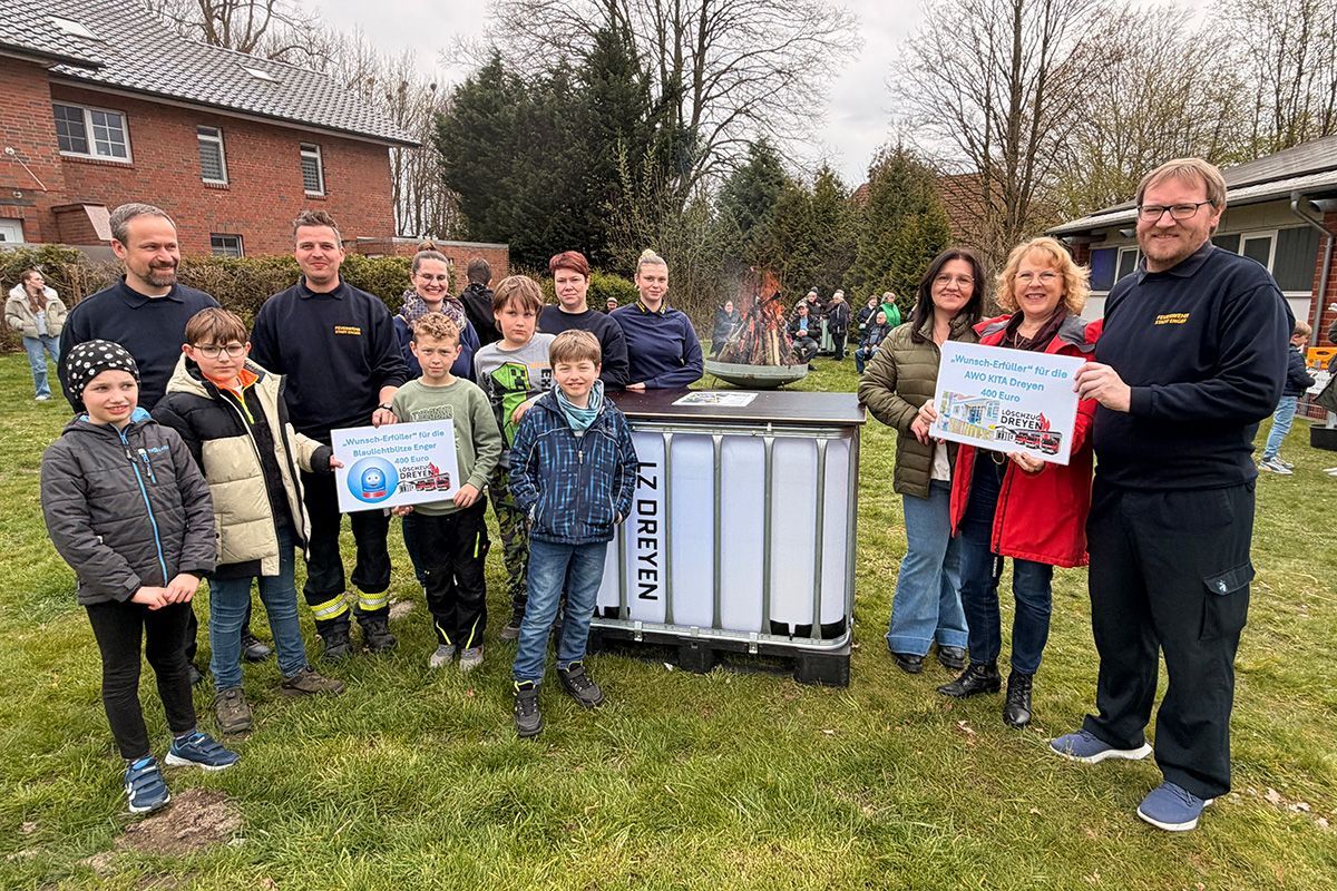 15. April 2026Der Löschzug Dreyen hat zu Ostern Spenden an die AWO-Kita Dreyen sowie an die Kinderfeuerwehr “Blaulichtblitze” aus Enger überreicht. Beide Einrichtungen erhielten jeweils 400 Euro als sogenannten “Wunscherfüller”.